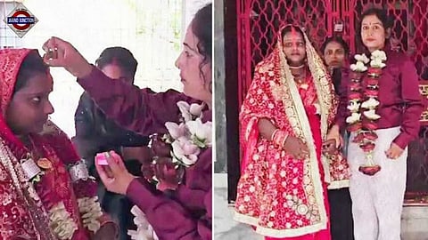 The video, recorded at a temple in Belwa village shows the couple exchanging garlands and performing traditional Hindu rituals.