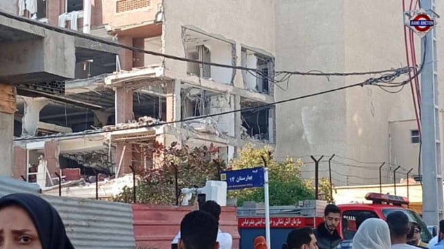 Visuals aired on state media showed the building’s façade blown apart, with debris strewn across the surrounding area and parts of the interior exposed.