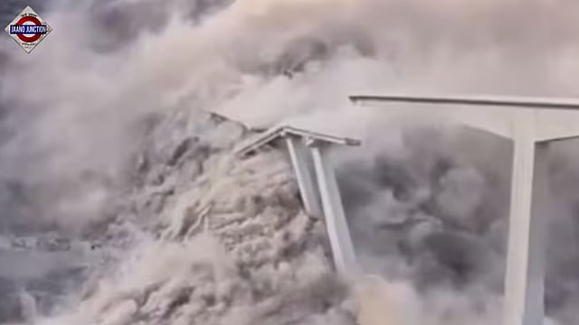 The incident occurred near the Shuangjiangkou Hydropower Station in Maerkang city. Videos circulating on social media capture the hillside beginning to crumble, sending clouds of dust and debris skyward. Within seconds, the ground beneath the bridge gives way, causing its pillars to tilt and the span to collapse dramatically into the river.