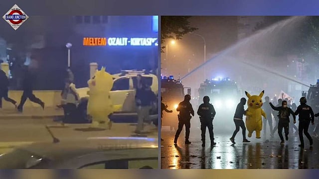 A video of a Pikachu fleeing the protests is now going viral on social media.