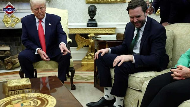 US President Donald Trump on Wednesday found his attention derailing during a meeting with Irish Prime Minister Michel Martin for St. Patrick's Day breakfast at the White House, courtesy Vice President JD Vance's shamrock-themed socks. The incident saw both Vance and Martin break into laughter as the 78-year-old President admitted he was having hard time to focus because of his second-in-command's socks.