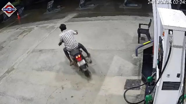 The footage, recorded at a petrol pump around 2.23 am on October 24, shows Shankar parking his motorcycle near a fuel dispenser. The pillion rider can be seen dismounting as both men look around, apparently calling out for the pump staff. A few seconds later, the biker returns, turns the vehicle using its tail, and rides away unsteadily. The biker was allegedly under the influence of alcohol.