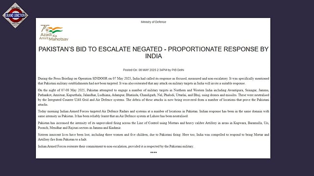 On the night of 07-08 May 2025, Pakistan attempted to engage a number of military targets in Northern and Western India including Awantipura, Srinagar, Jammu, Pathankot, Amritsar, Kapurthala, Jalandhar, Ludhiana, Adampur, Bhatinda, Chandigarh, Nal, Phalodi, Uttarlai, and Bhuj, using drones and missiles. These were neutralised by the Integrated Counter UAS Grid and Air Defence systems. The debris of these attacks is now being recovered from a number of locations that prove the Pakistani attacks.