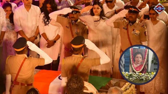 Visuals from her residence showed many people coming to pay their respects. These included family members, people from the film industry, officials, and fans. The atmosphere remained somber, with prayers and silence as state personnel carried out the ceremonial proceedings.