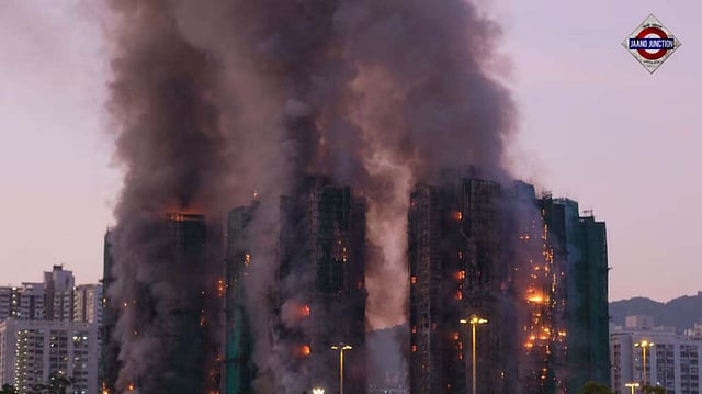 A masive fire broke out at multiple high-rise towers of a residential housing complex in Hong Kong's northern Tai Po district on Wednesday (Nov 26). Plumes of thick grey smoke billowing out as emergency services battled to subdue the blaze. Several people were reportedly trapped inside, according to public broadcaster RTHK. The city's government confirmed that at least four people have died. Police, earlier said that some fire services staff have also been injured. The housing complex has been identified as Wang Fuk Court, which is made up of eight blocks, providing close to 2,000 residential units. Social media video showed several towers in flames.
