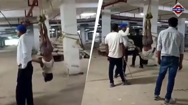 A shocking video showing a migrant worker hung upside down and brutally beaten inside a building in Gurugram has triggered widespread outrage and led to the arrest of four men. The video, believed to have been recorded in June, shows the man suspended by his feet while several individuals take turns assaulting him.