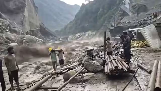 The surge has impacted the site of the previously destroyed Teesta Stage III dam in Chungthang, with construction workers seen clearing debris amid rising water levels.