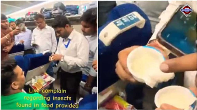 In another video, railway authorities were seen arriving at his seat to inspect the complaint. Using a torch, officials closely examined the curd while the passenger pointed out worms moving on the tray. The footage also showed the rest of the meal placed on the same tray.