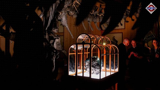 The teal-coloured bag is on display at Amsterdam’s Art Zoo museum, perched on a rock inside a cage beneath a replica of a T. rex. It will remain there until May 11, after which it is set to be auctioned, with a reported starting price of over half a million dollars.