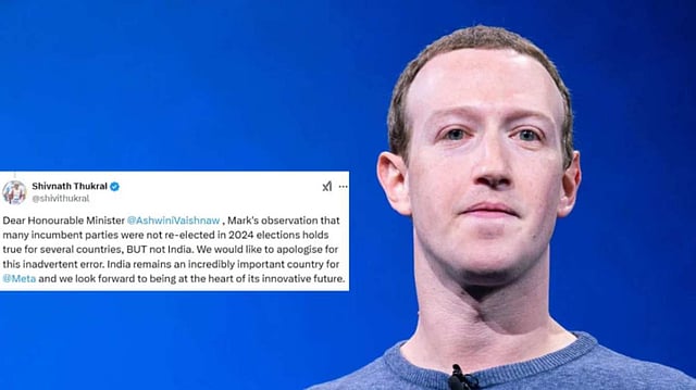 Meta India apologised on Wednesday for Mark Zuckerberg's remark that the incumbent government in India lost power in the 2024 elections, calling it an "inadvertent error". The apology by Meta India's Vice President comes a day after BJP MP Nishikant Dubey, who heads the parliamentary panel on IT, said it would summon the company's officials over the remark.