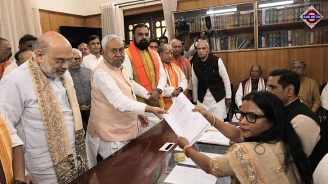 Nitish Kumar, who took oath as Bihar’s chief minister for the record 10th time last year in November, filed his nomination alongside BJP national president Nitin Nabin.