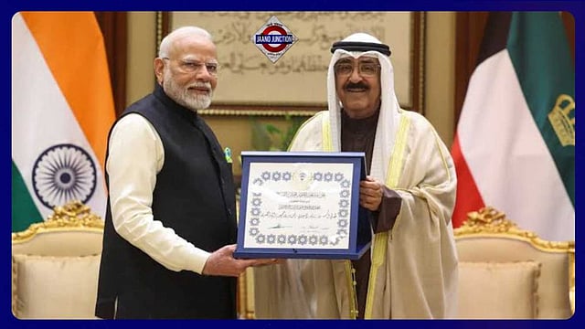 PM Modi is on a two-day visit to the Gulf nation at the invitation of Sheikh Meshal Al-Ahmad Al-Jaber Al-Sabah, marking the first official visit of an Indian PM to Kuwait in 43 years.
