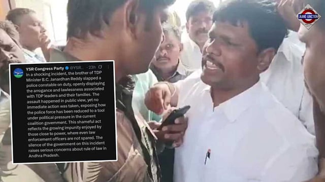 In a post on X the party said, “This shameful act reflects the growing impunity enjoyed by those close to power, where even law enforcement officers are not spared. The silence of the government on this incident raises serious concerns about rule of law in Andhra Pradesh.”