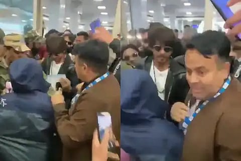 Shah Rukh Khan was spotted heading to board a flight from Srinagar on Friday when the Bollywood superstar was mobbed by fellow travellers at the airport. In a viral video, SRK was seen surrounded by a sea of fans trying to take a selfie with the actor. While Shah Rukh tried to find his way around and get out of the crowd, it was a struggle as fans appeared to not let him go without a selfie.