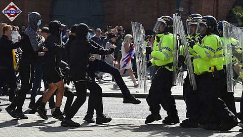 A wave of violent protests swept across the UK, leaving several police officers injured during clashes between anti-immigration and anti-Muslim protesters in the aftermath of misinformation over a fatal stabbing of three young girls in Southport last month. Protesters threw bricks, bottles and flares at police officers as clashes intensified throughout the day.