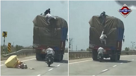A video of three men stealing goods from a moving truck in Madhya Pradesh has gone viral on social media. The incident was caught on camera as a man driving at a slight distance from the truck between the Dewas-Shajapur route on the Agra-Mumbai highway recorded it from his car. The video of the robbery, in fact, is reminiscent of a Hindi film scene.
