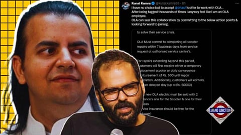 Comedian Kunal Kamra jokingly said on Monday he had "no choice" but to accept Ola CEO Bhavish Aggarwal's "offer to work" at the company's service centre if it committed to four "action points", including completing service in seven days and free service insurance. This came days after Kamra and Aggarwal had a heated conversation on X when the comedian pointed out the piling up of Ola Electric scooters outside what appeared to be an Ola store.