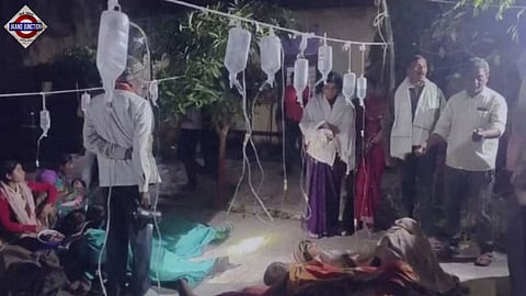 The people who fell sick were rushed to a hospital in Bibi village. But given the shortage of beds, most of the patients had to be treated on the road outside the hospital. Saline bottles were fitted on the ropes that were hooked to the trees.