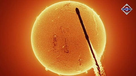 The image is the first known capture of a rocket launch transiting the Sun’s chromosphere, making it a historic achievement in both astrophotography and space observation.